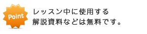 学習を進める上で、説明のため書いた資料や一緒に書いたソースコードなどには料金はかかりません。その時間に理解出来なくても後で見直してください。 |
