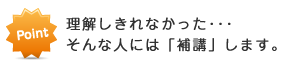 「来週も…」と言いつつ、忙しい時などは受講内容を理解するのに時間がかかる方もいらっしゃいます。スケジュールは常にご相談ください。 |