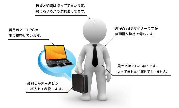 講師としては某デザインスクールとしていますが、このサイトを通じ、通常の講習以外にも企業研修や営業的なセミナーなど様々な講義、講習も担当することもあります。